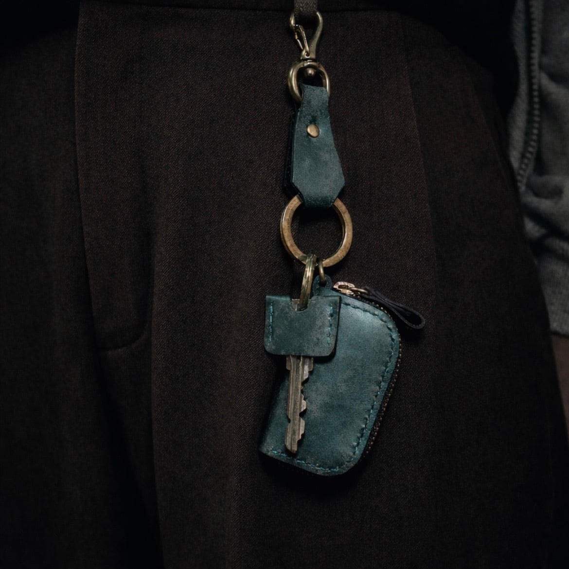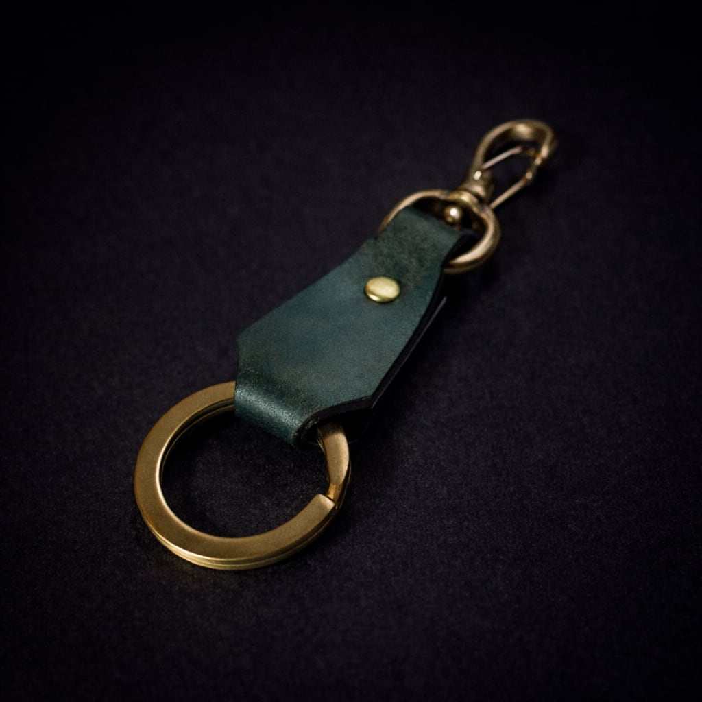 経年変化を楽しめる真鍮金具を組み合わせたキーリング。