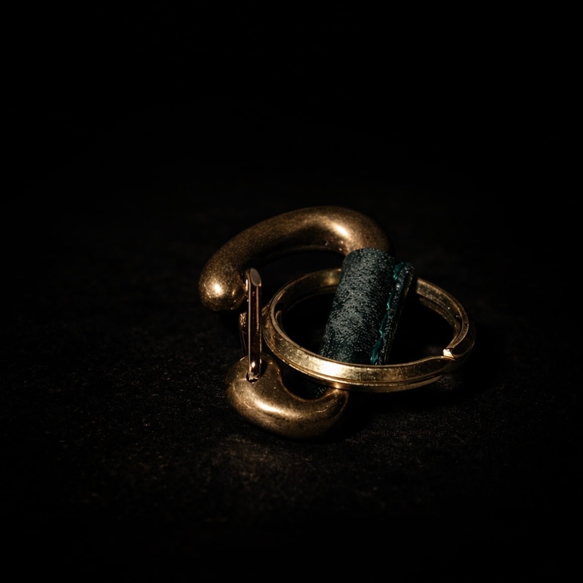 無骨な真鍮とレザーを組み合わせた、カラビナキーリング。