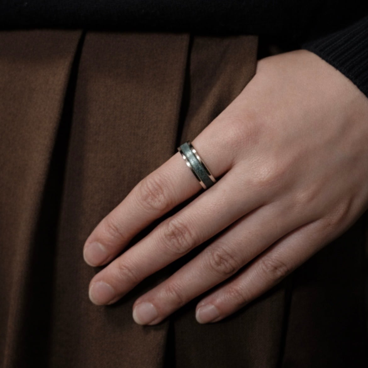 「ネットで指輪を買うのはサイズが不安…」 そんな声にお応えし、ご自身で調整可能なオープンリング設計を採用しました。 ベース素材に柔軟性のある真鍮を使用しているため、約3号分のサイズ調整(広げる・縮める)が可能です。